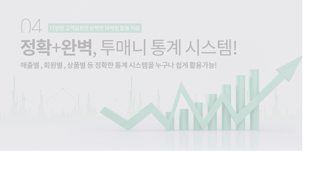 다양한 통계기능고객들의 구매가 활발해지는 흐름을 확인하여 이에 맞는 마케팅을 할 수 있습니다.